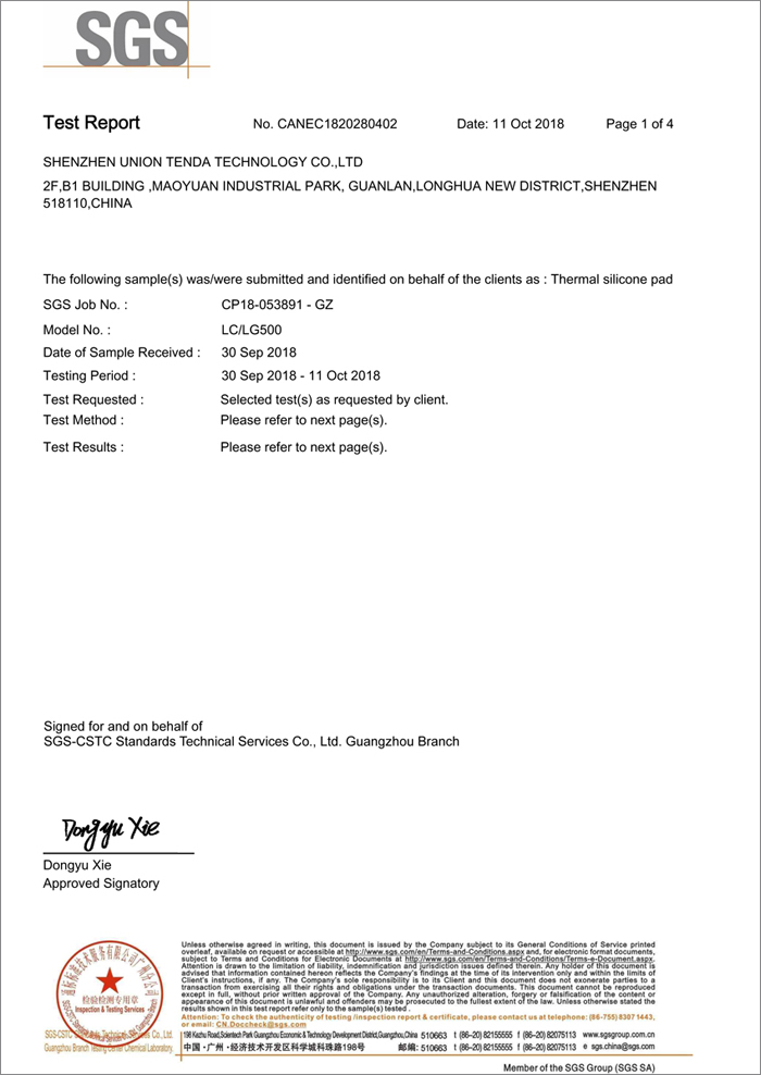 LC600導(dǎo)熱硅膠片實(shí)測認(rèn)證