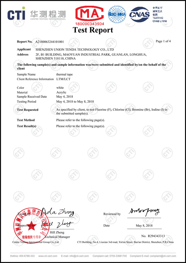 導(dǎo)熱雙面膠鹵素報(bào)告